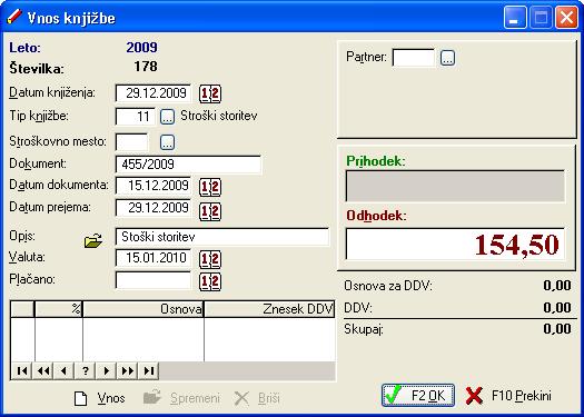 - knjiga prihodkov in odhodkov