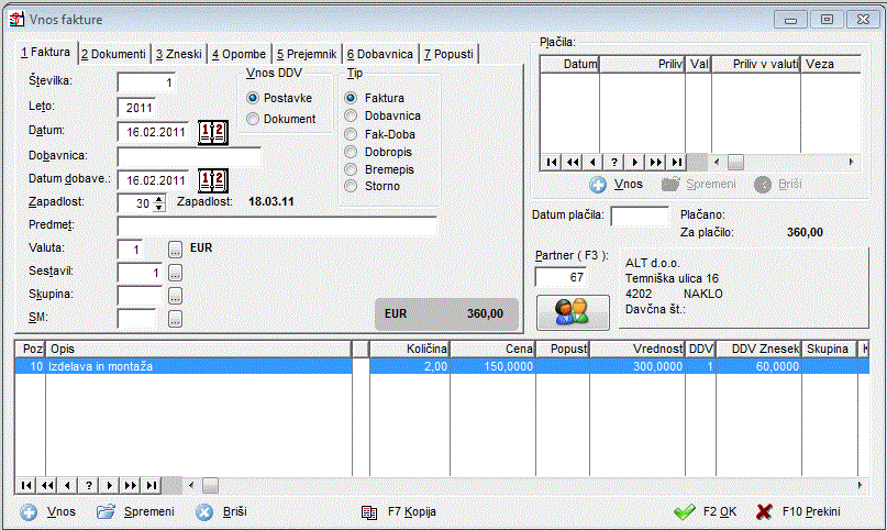 - Vnos partnerja na ponudbi ( prenovljeno )