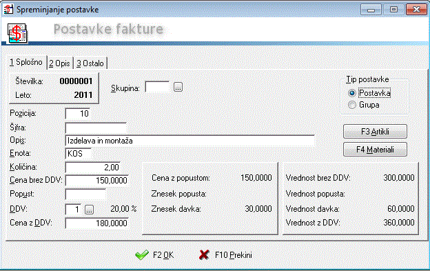 - povečano polje za vnos opisa artiklov ali storitev v šifrantu Artikli in storitve