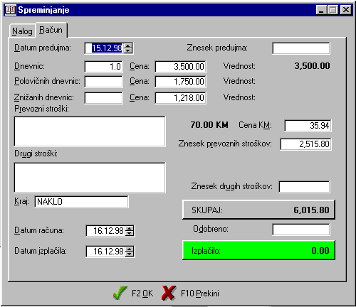 - Po povratku iz službene poti le še vnesemo končne podatke in račun za potni nalog je pripravljen za tiskanje.