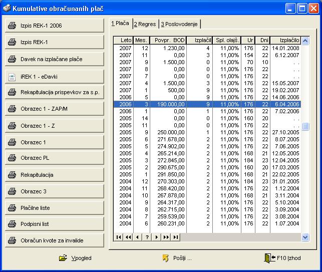 - Izpis rekapitulacije prispevkov za zaposlene pri s.p.